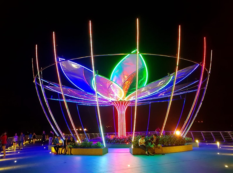 Nếu cái tết này bạn có đi chơi cùng người ấy, hãy dẫn họ tới cây cầu Tình Yêu ở Cần Thơ. Đây là điểm chụp ảnh tết đầy lãng mạn thu hút đông đảo du khách vào dịp đầu năm. Cây cầu nằm bên bến Ninh Kiều, nổi bật với thiết kế uốn lượn mềm mại và không gian được trang trí rực rỡ với đèn lồng đỏ, tạo nên khung cảnh tuyệt đẹp về đêm. Du khách có thể chụp ảnh cùng dòng chữ “Cầu Tình Yêu,” phông nền là dòng sông Hậu thơ mộng, cùng những ánh đèn lung linh phản chiếu trên mặt nước. Đây là địa điểm lý tưởng để lưu giữ những khoảnh khắc xuân sum họp, yêu thương và hạnh phúc. Với không khí tươi vui và sắc xuân rạng rỡ, Cầu Tình Yêu mang đến những bức ảnh Tết độc đáo và ý nghĩa.