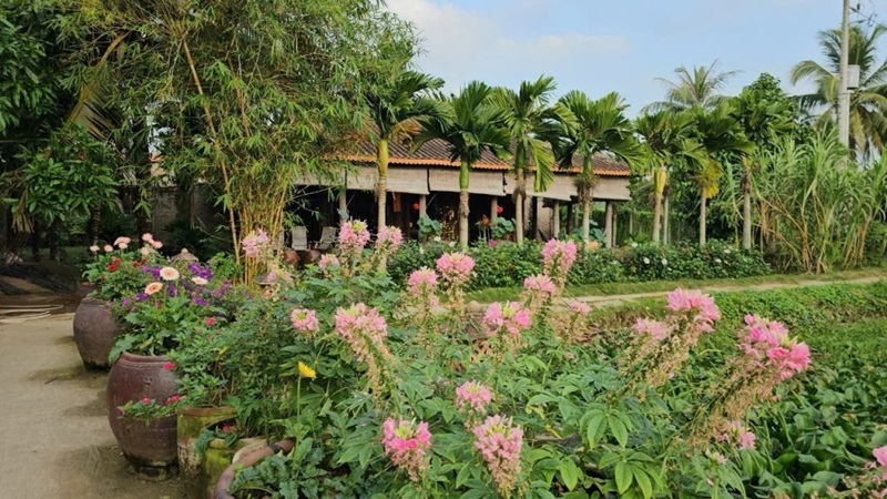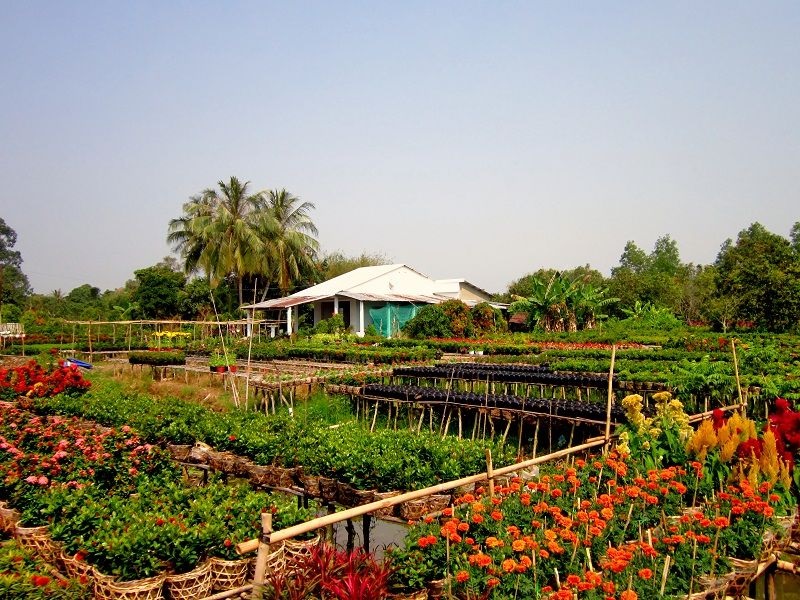 Ghé thăm làng hoa nổi tiếng ở miền Tây này bạn có thể dạo bộ tham quan nhà vườn cây kiểng của các nghệ nhân nổi tiếng. Sau đó, dừng chân tại vườn chuyên canh măng cụt, sầu riêng và không quên thưởng thức sầu riêng Cái Mơn cơm vàng hạt lép ngay tại vườn.