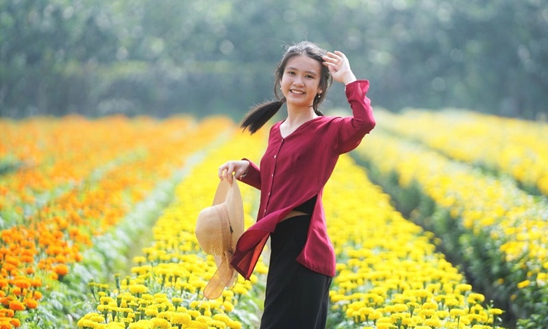 Chụp ảnh Tết ở làng hoa Mỹ Tho, Tiền Giang